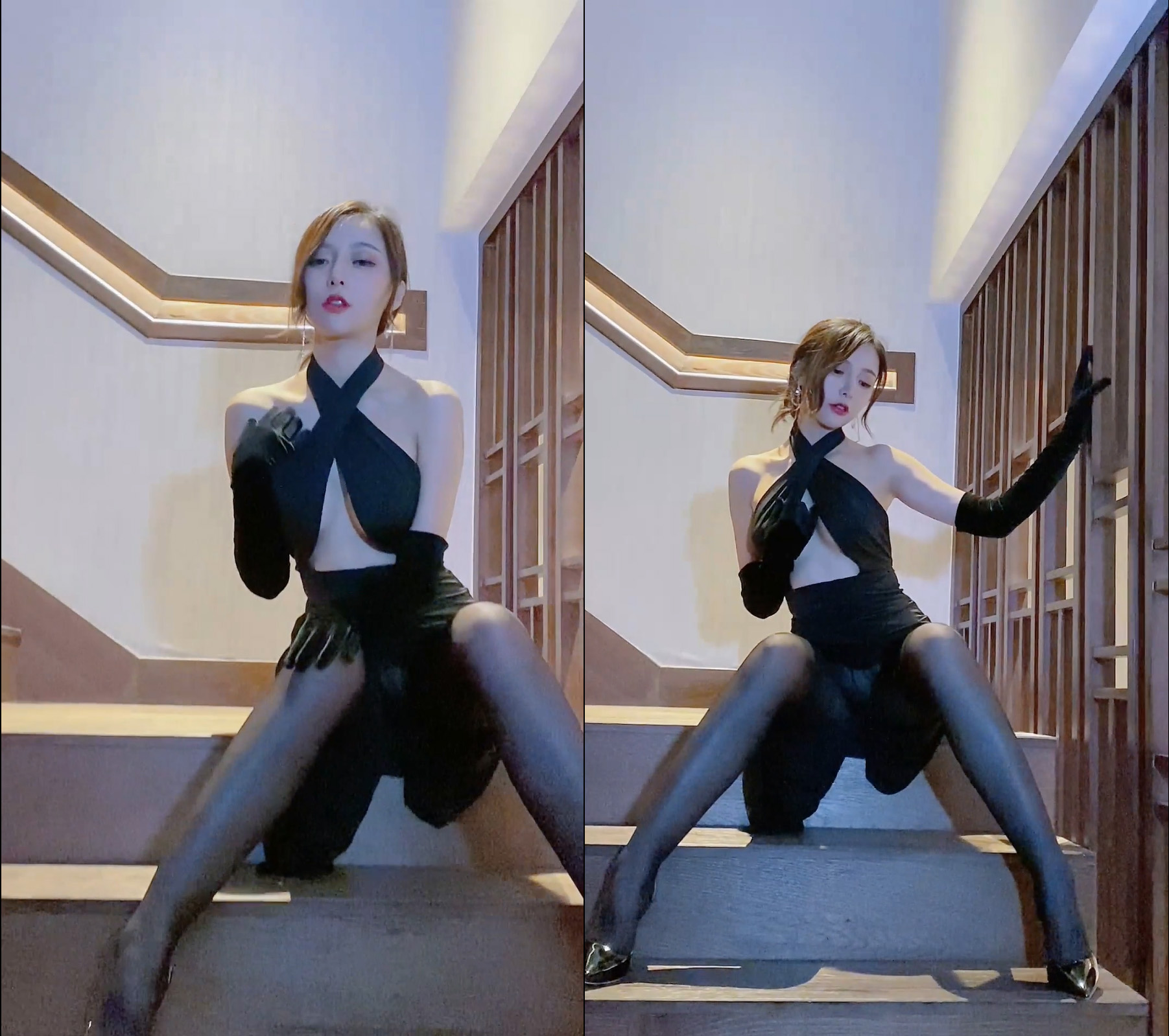 王馨瑶 No.017 黑色深V包臀挂脖裙 拍摄花絮 [1V-417MB]