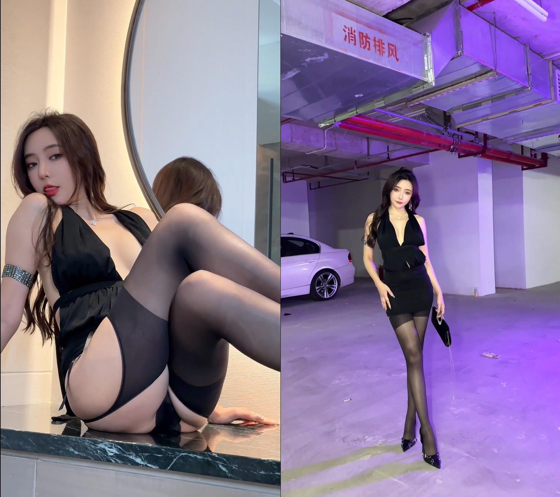 王馨瑶 No.017 黑色深V包臀挂脖裙 拍摄花絮